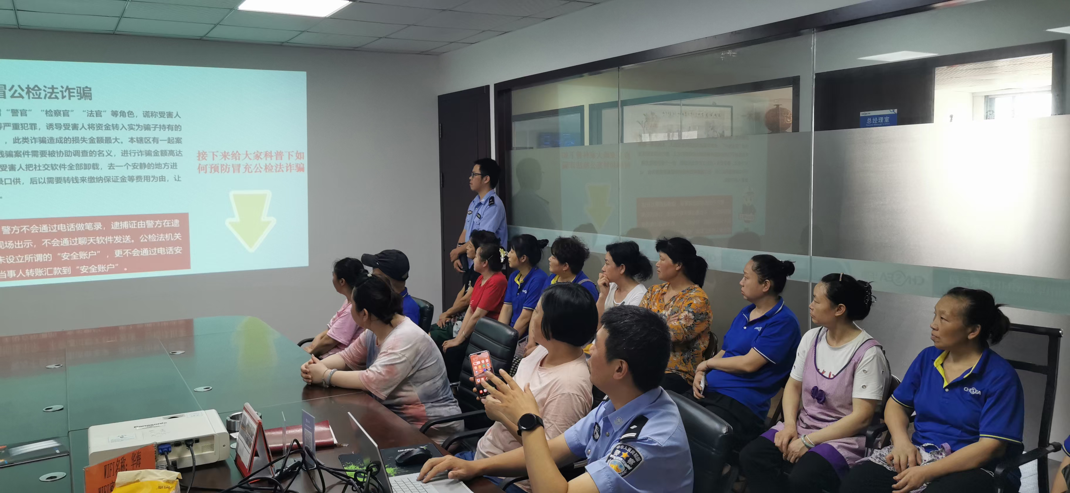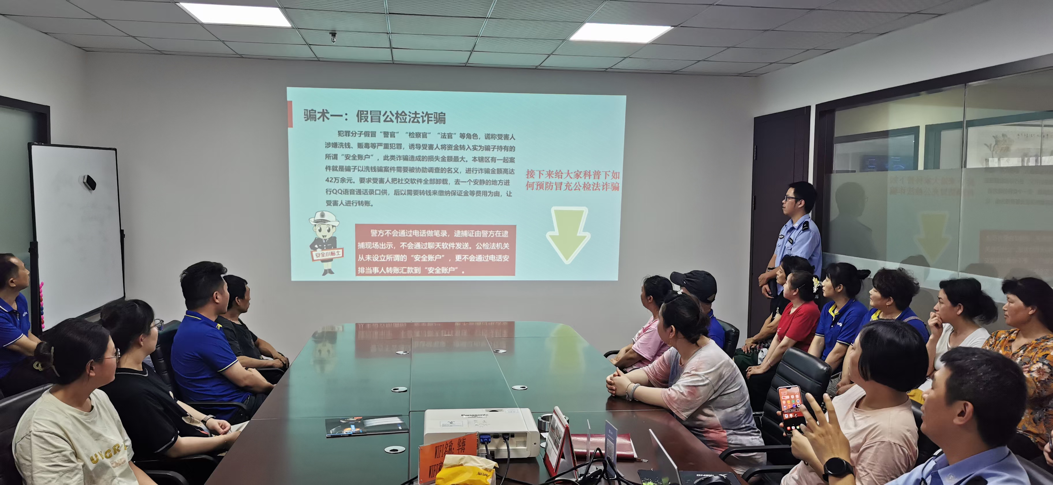 近日,永興派出所警官到華?,F(xiàn)場(chǎng)展開(kāi)防詐騙培訓(xùn)。