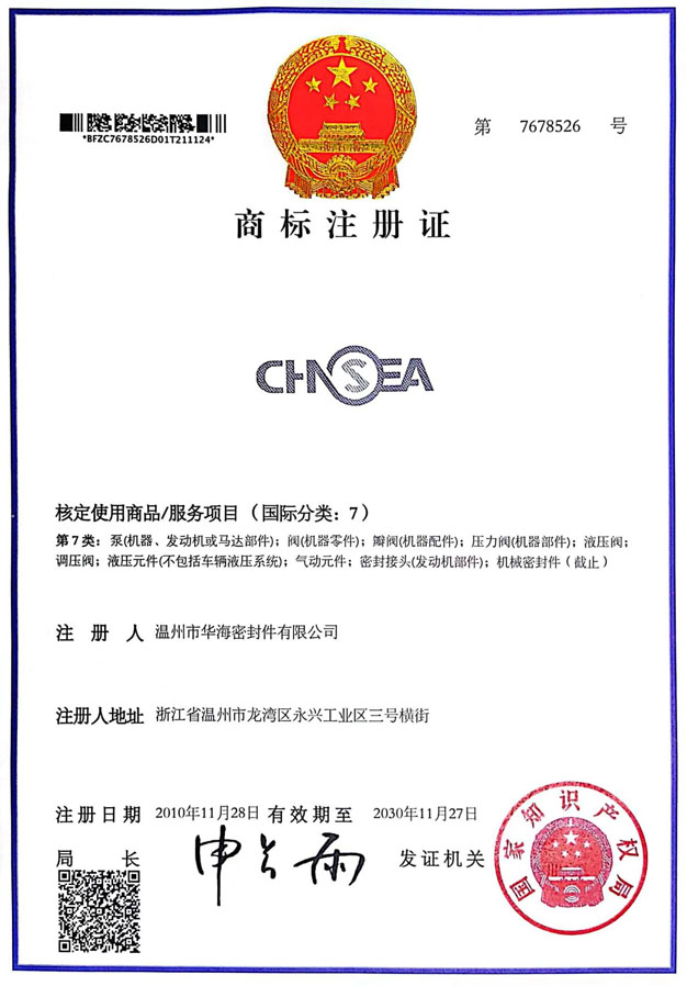 華海商標(biāo)注冊證書